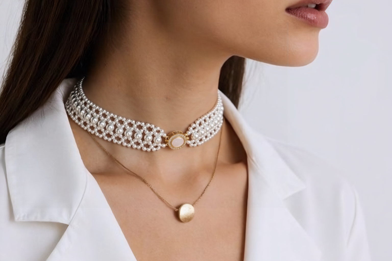 Pearls are delicate—avoid contact with cosmetics, perfume, and harsh chemicals. Clean gently with a soft, damp cloth after wear and store separately in a soft pouch to prevent scratches. Remove before swimming, showering, or exercising.